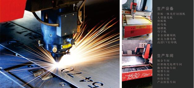 擁有專業的生產設備,型激光機、折彎機、雕刻機、UV打印機,彎字機